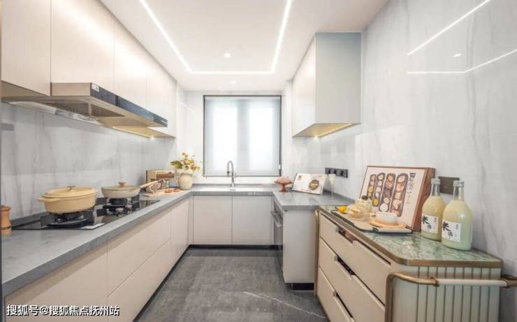 餐客厅一体化,形成约5.1米大横厅,连接巨幅观景飘窗与约2.3米宽深U型厨房,提升空间通透性与开敞度,适配多元生活方式,无论是日常生活,还是待客聚会,尺度感十足。