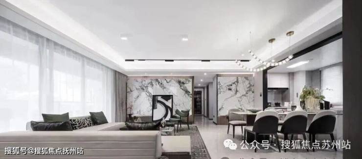 约6米客厅与餐厅、厨房及阳台一体化布局,让空间互动更高效,承载家人欢聚时光