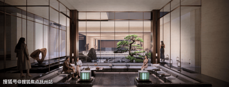 中间360度无死角庭院,灵感源于泗水归堂的格局,院内羽毛枫随着四季流转,呈现出琉璃般绚烂的光影。不管在会所哪个方位,都可以看到中间独特景观,大有一种,大隐隐于市,闹中取静的意境, 新颖别致,让Lisa感受到了无与伦比的精致生活。