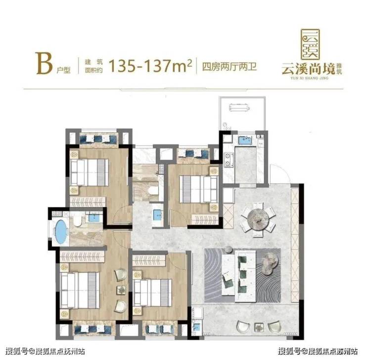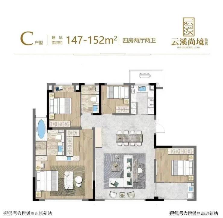 约147㎡王炸户型——4房2厅2位,近14.5米大面宽满足生活大师对日常的一切想象