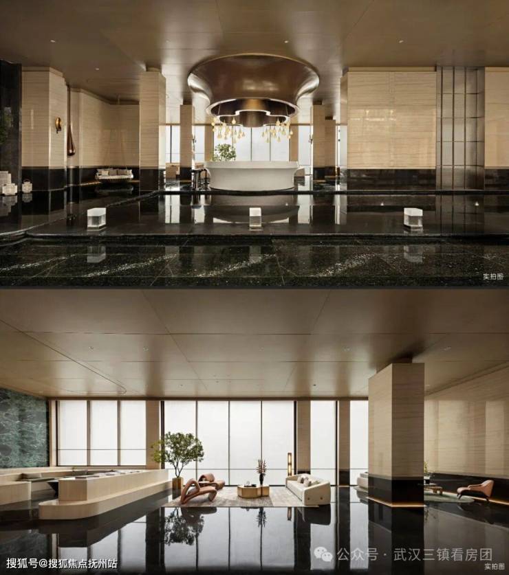 酒店公区以“Hotel Life”为设计灵感,经典的棕木色木饰面邂逅PRADA绿奢石墙面,致敬全球奢华酒店臻装艺术。同时打造符合武汉塔尖精英的架空层泛会所,茶社、会客厅、秘密树洞主题区,以全龄多主题架空层,定制级时尚生活领地。