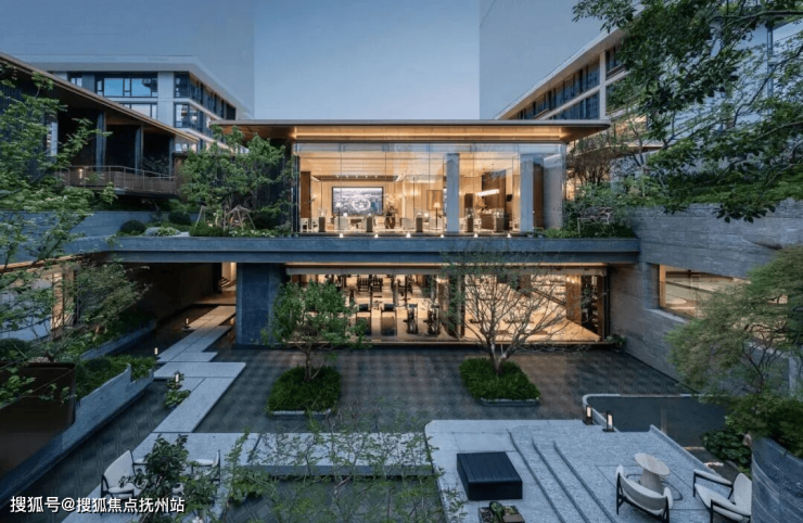 丽香庭以古典入园空间为灵感,精心营造多重院落与层层递进的归家仪式感。地块整体抬升约3.7米,结合最大高差超7.5米的下沉庭院,巧妙运用视觉层次划分功能区域。通过散点布局与小空间组织,消弭空间中心,自然山水垂直延展,构筑多维“立体庭院”。