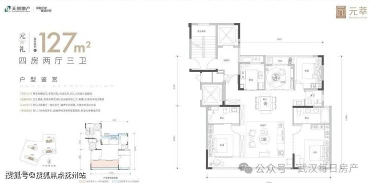 4栋楼中都有127平的户型,数量是目前已公示的三个户型中最多的,并且绝对面积不大,总价门槛会相对另外两个户型低一些,算是武昌下半年相对较少的小面积产品。