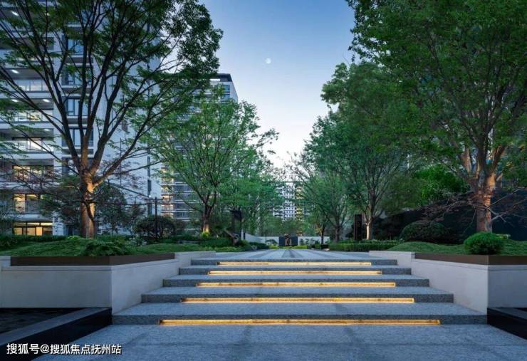 从南入口约72m港湾式落客区,到约6.9m高酒店式入户大堂,再到层层叠叠错落景观,皆以自然为画布,将花境、绿植融入园区每一寸光景,让生活回归”复得返自然”的宁静与平和。