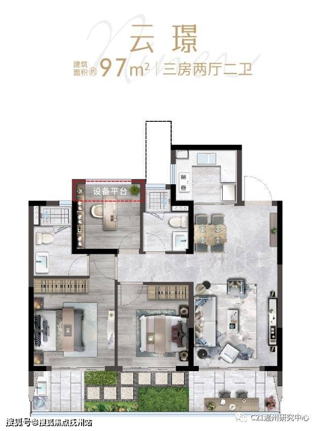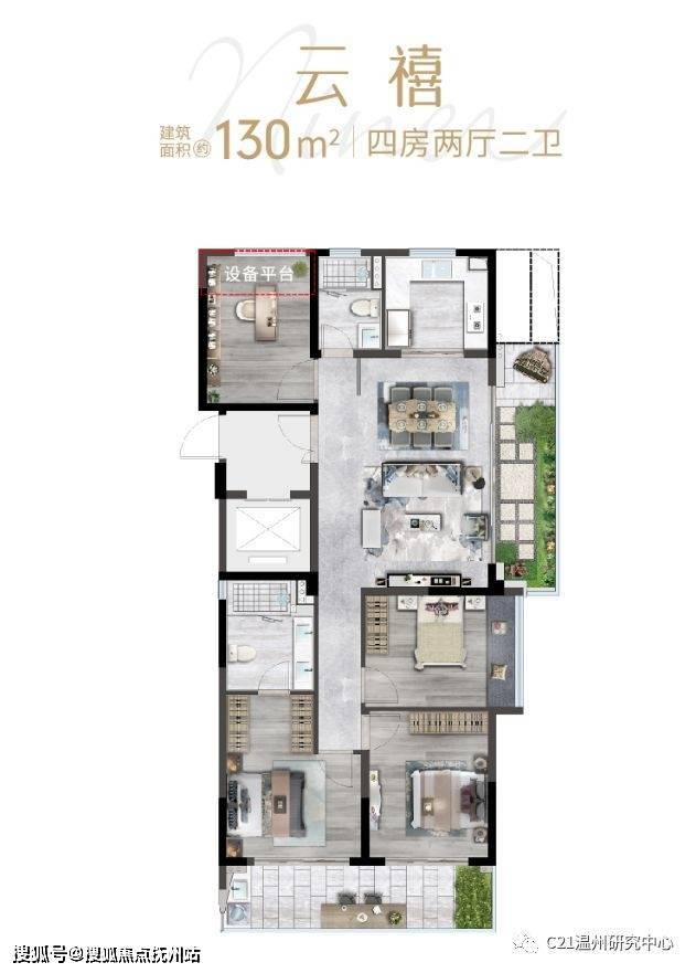 该项目主体外墙为金属板,难得高低配置低密大盘。本次销售小高层(最高17层)户型为97-234㎡。