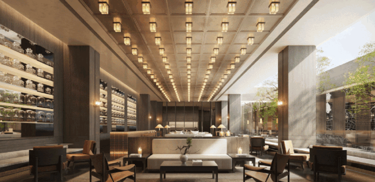 项目东侧、沿青阳港水岸线是同步开发的临水高奢酒店,将作为青阳港滨水城市会客厅的一张新名片,承载起昆山招商引资的重要载体和宣发功能。