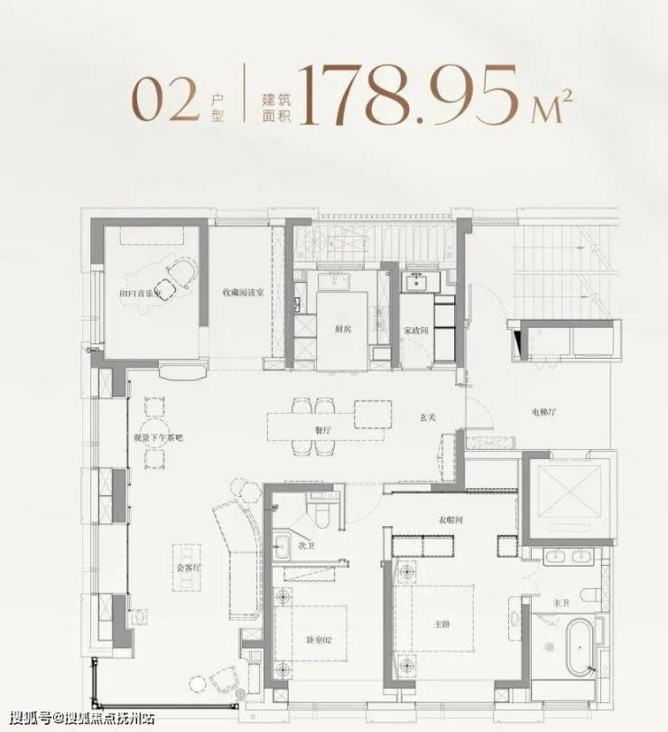 以建面约179㎡的边套为例,并未将北房间局限为常规卧室,而是灵活打造为HIFI音乐室与收藏阅读室,既可作为业主的灵感工作室,也能成为孩子的兴趣天地;