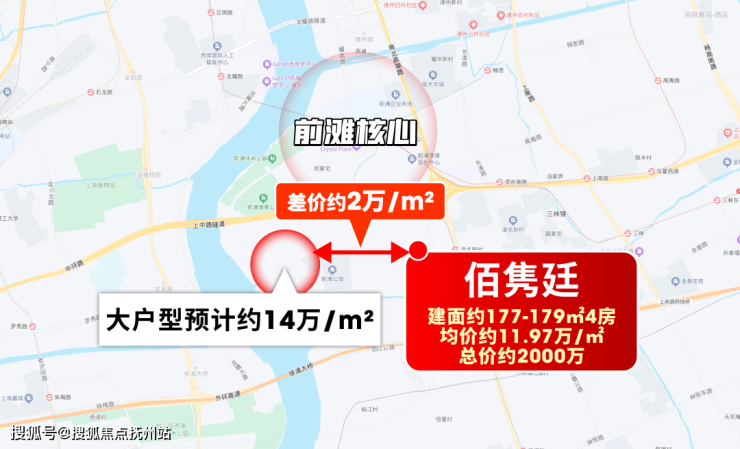 哪怕对比西侧待售新房,优势也很清晰:那边大户型预计均价约14万/㎡,佰隽廷又拉出了约2万/㎡价差。