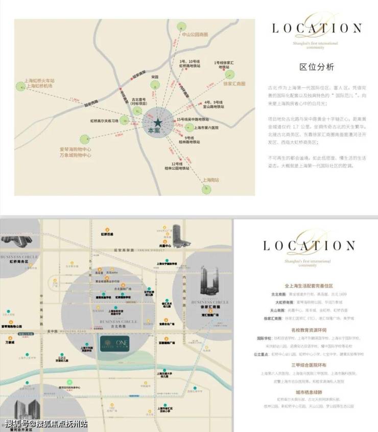项目地处闵行长宁交界的古北板块,项目依托虹桥交通枢纽和长宁徐汇商圈,交通便利配套成熟,是上海第一个大型高标准的国际豪宅社区。