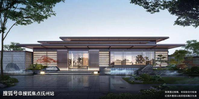 ◆二进|登门望府 :以画景还原的方式,打造飘逸巍峨的“三重檐”,结合七开间秩序的建筑手法,还原传统中式大门的礼序考究。