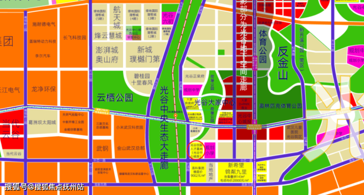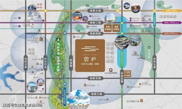 项目位于高新四路与豹溪路交汇处,属于光谷中心城南区,目前南区还正在发展中。