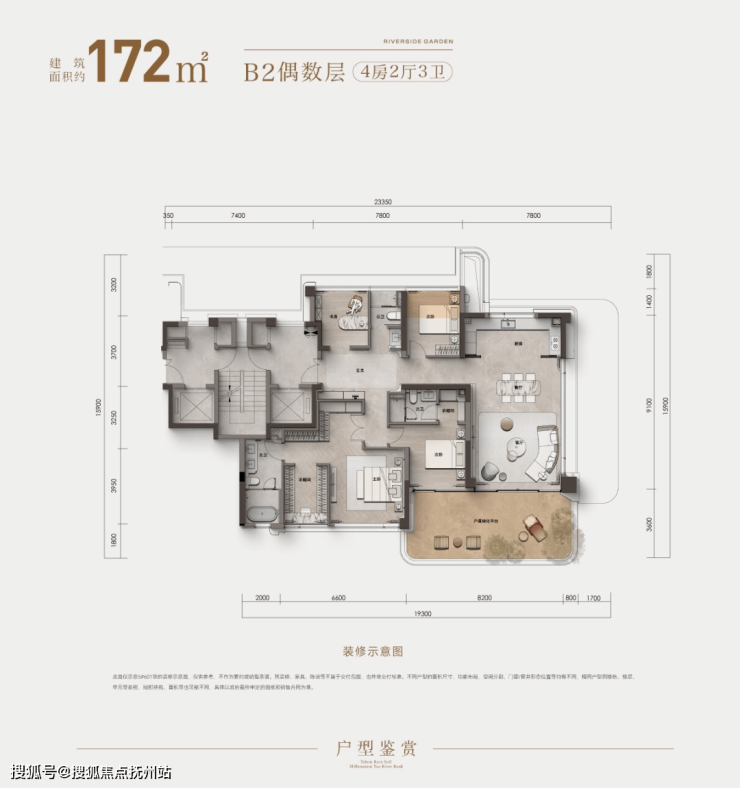 建面约172㎡B2户型,将空间艺术发挥到极致。约30㎡、超8米南向面宽阔景露台,宛如一方私属庭院,让生活的诗意自然生长;约8.6米面宽南向主卧套房,将睡眠区、朝南独立衣帽间与卫浴融为一体,让同频星级酒店的奢享融入日常;多套房酒店式设计,确保了每位家人都能享有不被打扰的尊严与从容。