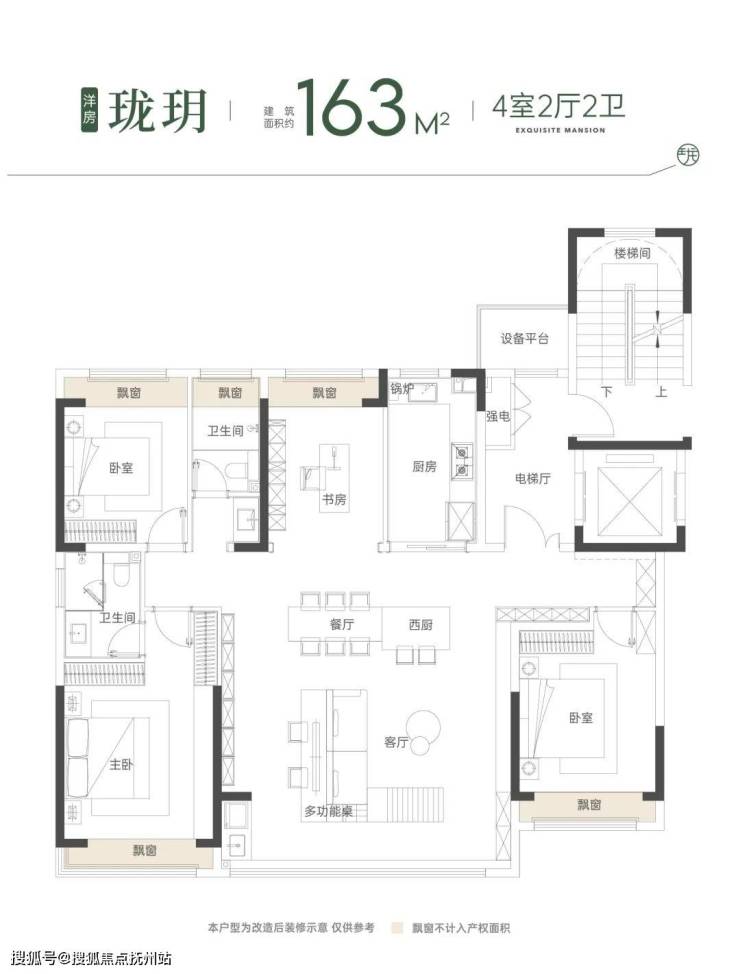 洋房:建筑面积约163㎡ | 4室2厅2卫,一梯两户/超大玄关/豪华主卧/ 干湿分离