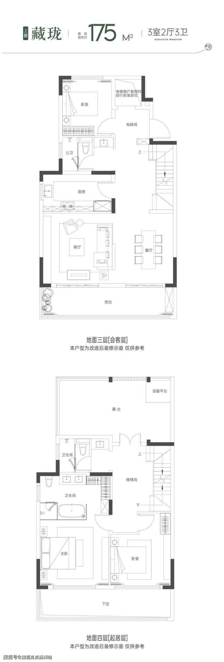 叠墅:建筑面积约175㎡ |3室2厅3卫