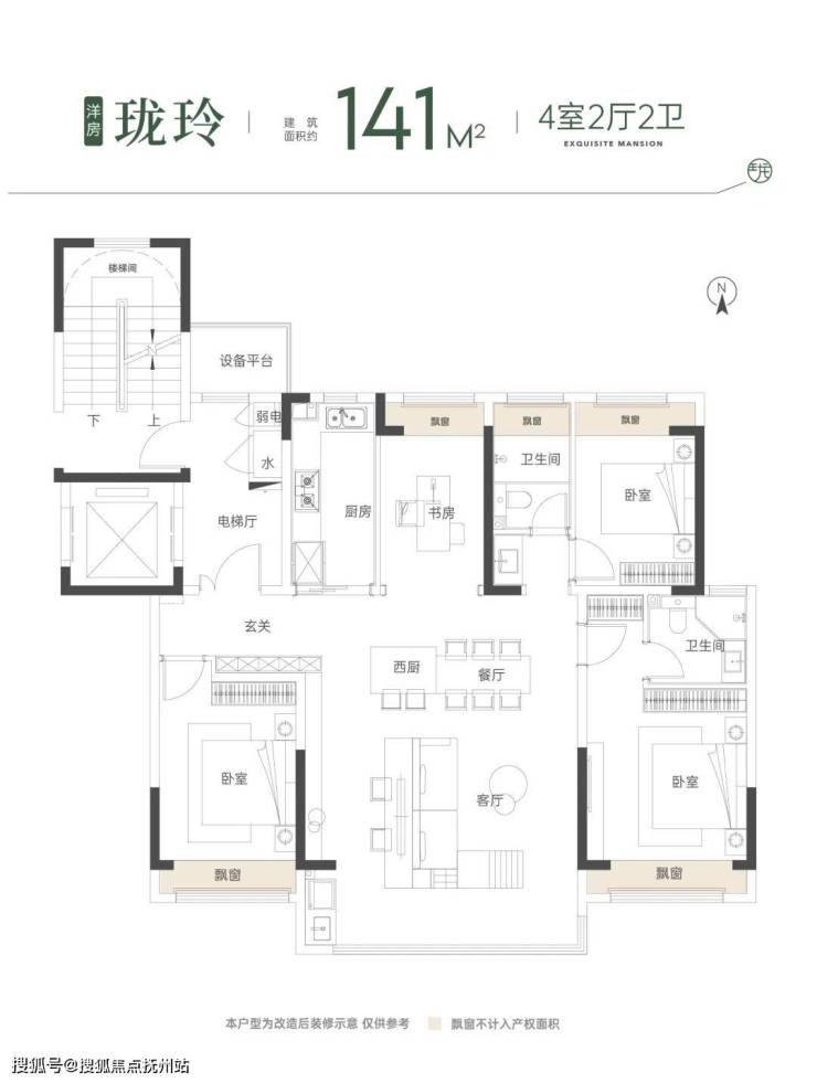 洋房:建筑面积约141㎡ | 4室2厅2卫,一梯两户/南北通透/双开间阳台/豪华主卧套