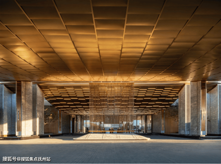 在凤起潮鸣,归家,即是一场艺术巡礼。项目主入口“凤起冕旒”,以现代建筑语汇转译古代帝王冠冕的仪制,85米长的门廊运用奢石、金属与6045颗手工景泰蓝旒珠,塑造出强烈的第一眼尊崇。