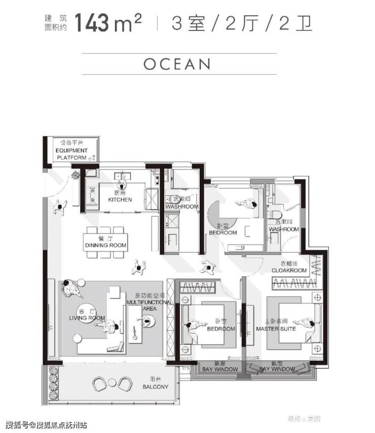 而户型设计更显功力:项目打造约115㎡、143㎡和170㎡大平层。