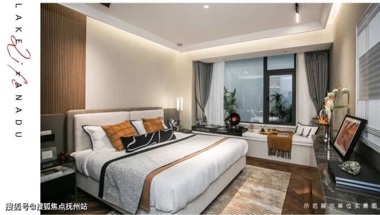上湖云庐,主卧套房配置270°转角飘窗(部分户型),飘窗空间可根据主人需求,随心打造,铺上几块软垫、放上三两个靠枕,270°转角飘窗摇身一变,化身多功能观景坐塌,阳光自由漫射进卧室里的每一寸角落,堪比巨幕影厅的IMAX恢弘视野,献映天地盛景四时更替。