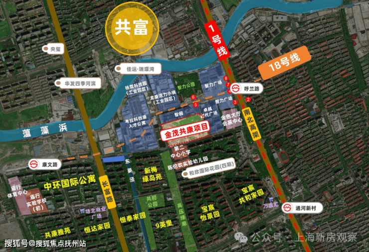 地块紧邻轨交1号线呼兰路站,距离仅约0.5公里,轨交通勤20分钟内可达人民广场。在建18号线直达新江湾、杨浦滨江和陆家嘴,预计今年底就能通车!这使得该区域成为连接市中心与宝山区的重要节点。