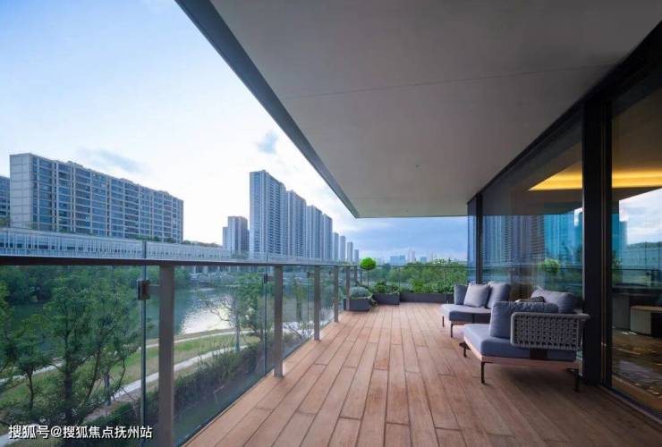 阳台设计上暗藏巧思,约3米进深的错落阳台,像从室内延伸出的“观景台”,把窗外的河景与社区景致拉成巨幕画幅。