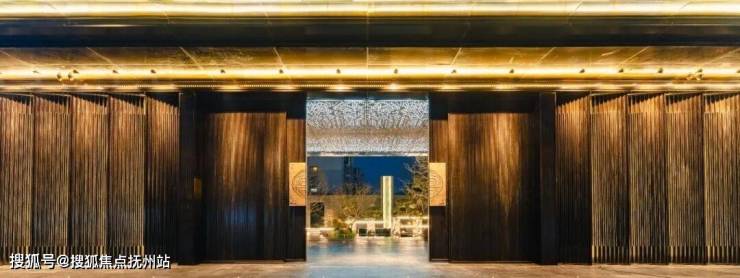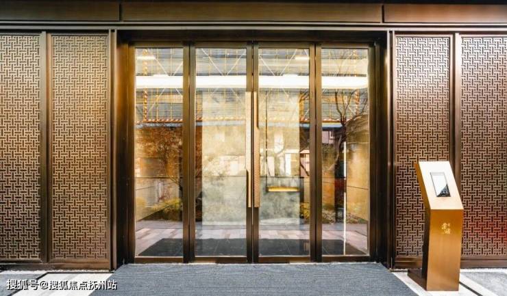 特别震撼的莫过于重金打造的约50米显赫门庭,恢弘气派,材料考究。约9米定制紫铜大门由非遗匠人手工锻造,气势巍峨恢宏。两侧通顶格栅搭配保加利亚灰岩板,呈现出偏内敛的贵感,豪中透雅;地面回形纹铺装,寓意富贵不断、吉利永长;屋檐勾勒云纹环绕,每一处细节极尽匠心,删繁就简。