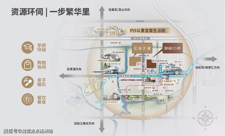 目前泗泾板块范围内已逐渐形成国际社区氛围,多维资源集聚,未来围绕泗泾板块将形成一个涵盖大型商业、高端医疗、综合枢纽、水系公园、品质住宅的国际化氛围。