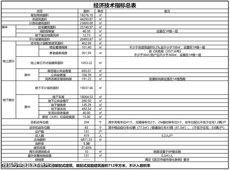 根据经济技术指标显示,该项目规划用地面积约1.8万方,总建面约4.4万方,计容建面约2.4万方,容积率约1.3,共131户,204个停车位,车位比约1:1.56。这里的总户数比之前传言的102户要多了近30户。