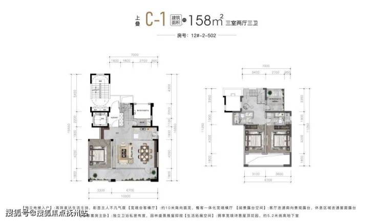 丨建面约158㎡三室两厅两卫上叠