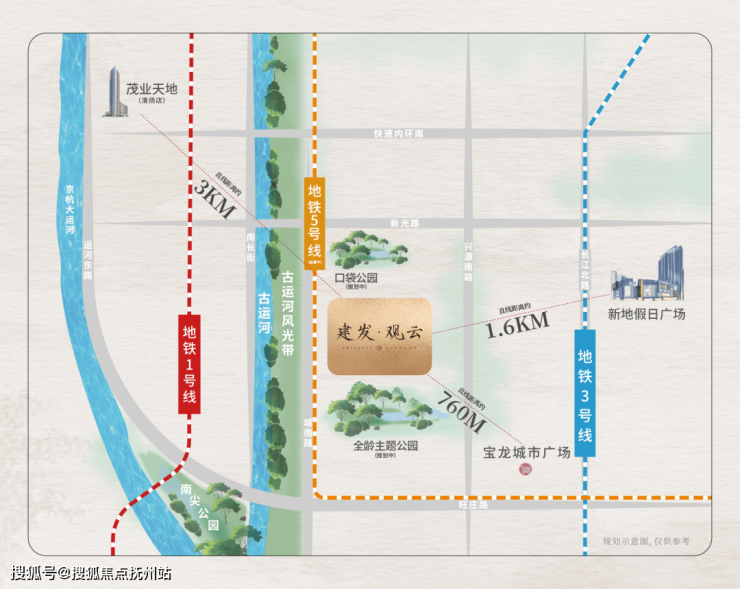 【高颜生态】一步古运河风光带,咫尺全龄主题公园(规划中)、口袋公园(规划中),距9.7万方南尖公园约800m(直线距离)