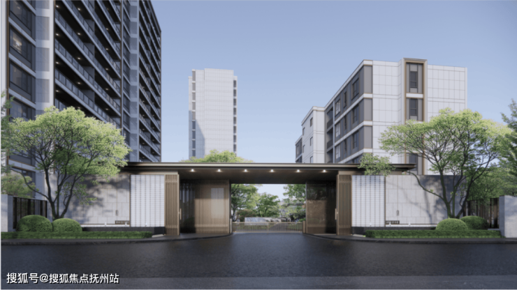 金属外框和横向线条的运用借鉴了苏州园林中传统的廊桥和拱廊设计,将元素引入外立面,营造连续流畅的空间感。线条与错落的布局相结合,形成苏州园林中庭院和景观之间的巧妙过渡,为住宅带来了内外空间的流畅互通。采用现代设计风格,立面简洁规则,以竖向线条划分体块关系,大面积大分割的玻璃使建筑整体轻盈通透,也创造良好的景观视野。细节上则力求精工细作,奢而不显。山墙面大面米白色铝板一体板,撑起立面整体的高级感,形成高级淡雅的立面风格。