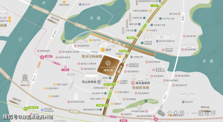 配套方面:项目北边约200米就是凯德1818购物中心,距离楚河汉街仅700米左右,距离SKP也不到500米,商业资源可以说是顶级的。
