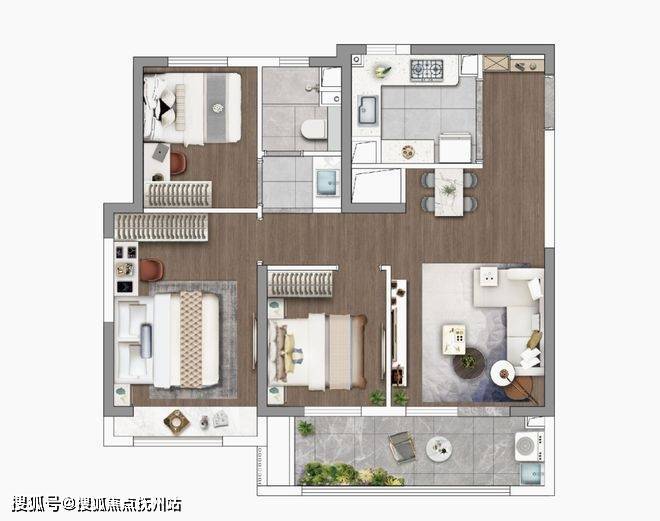 [舒居] 南向双卧,明媚起居;北向次卧,随心百变