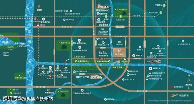 项目距地铁5号线新阳路站3号口(在建)直线距离约100M,距地铁2号线九里河公园站直线距离约 2.8KM,距苏南硕放机场、无锡新区站(高铁站)直线距离约6KM。高铁、地铁、机场等立体交通体系互联互通,构筑起缤纷生活版图。