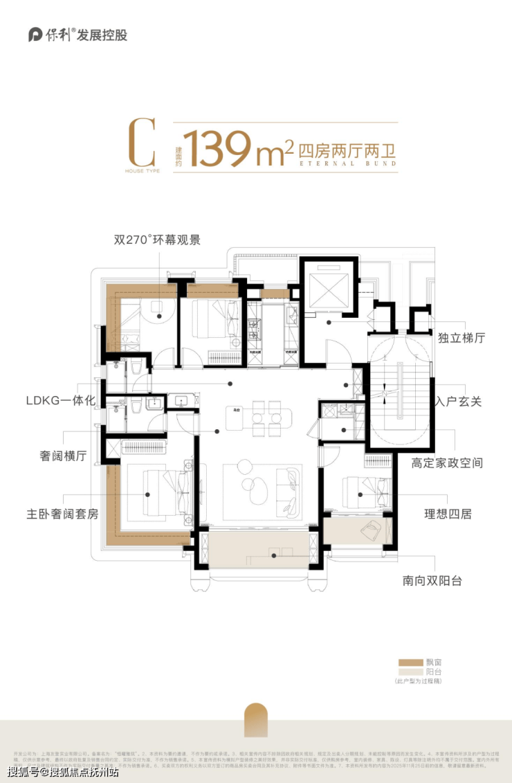 保利外滩曜建面约130㎡的实际使用率做到了约94%,双阳台+双约270°视野+一梯一户独立电梯厅+多飘窗。