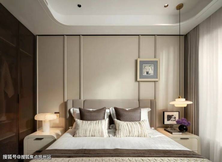 主卧是雅致与松弛共生的私域秘境,浅米色皮革软包墙与咖调床品、深色柜体交织,铺就温润高级的底色。金属线条隐于细节,悄悄勾勒精致感,床头暖光、软绒地毯、闲适床尾榻,再借白纱滤入的自然光,让主卧溢满湖的温柔。