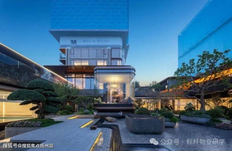 穿过景观廊桥,下沉式庭院"浮岛森屿"跃然眼前。环抱式布局隔绝喧嚣,全玻璃幕墙引入自然光,使会所空间如悬浮水面的岛屿般静谧梦幻。