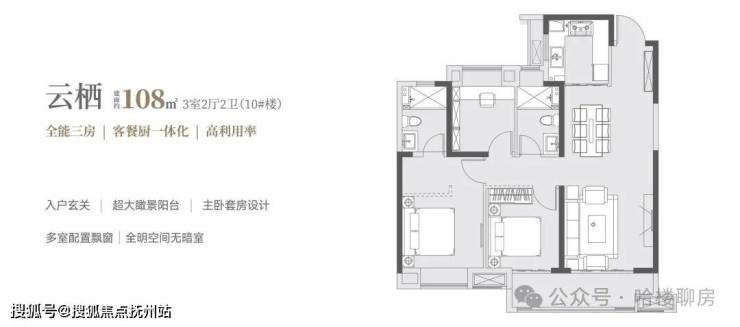 建面约108㎡【3房2厅2卫】