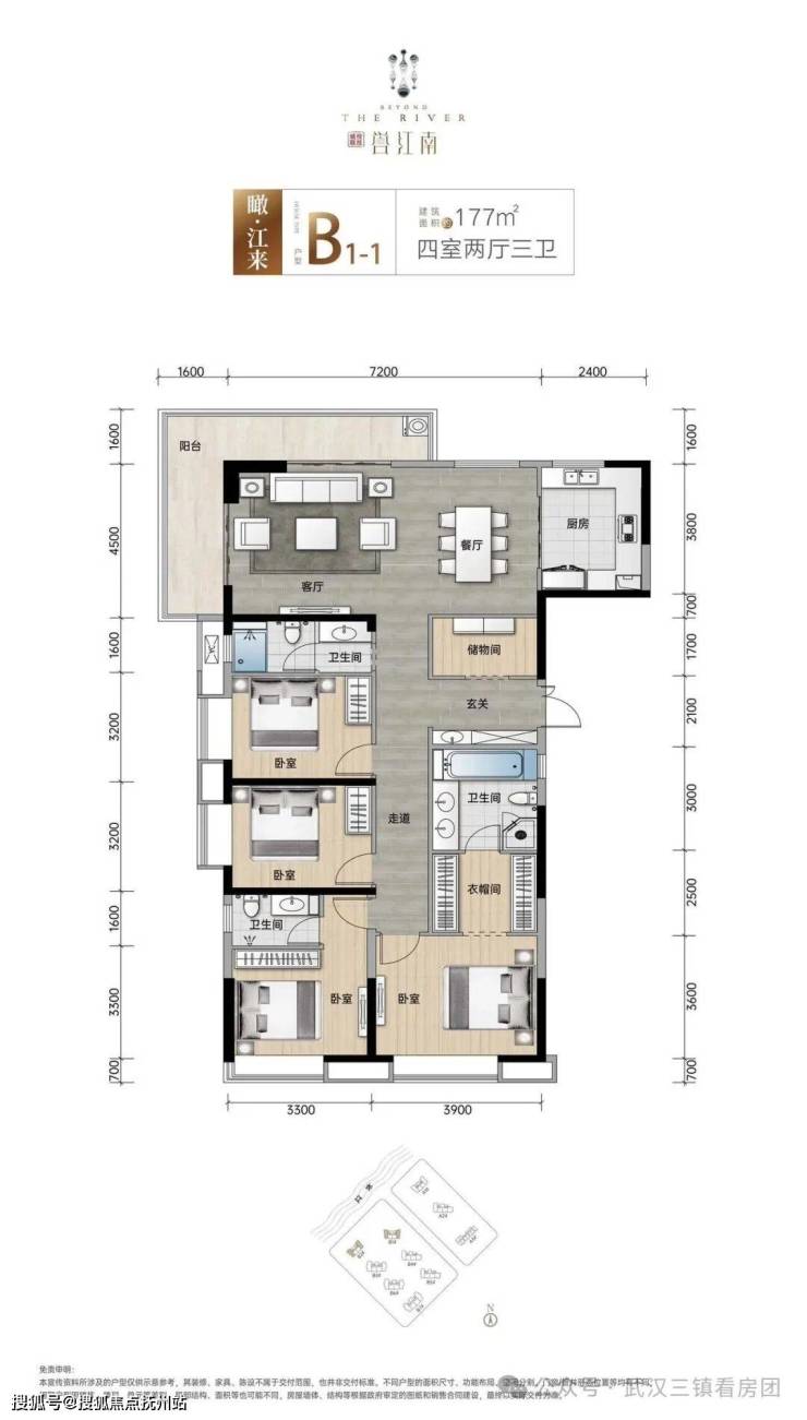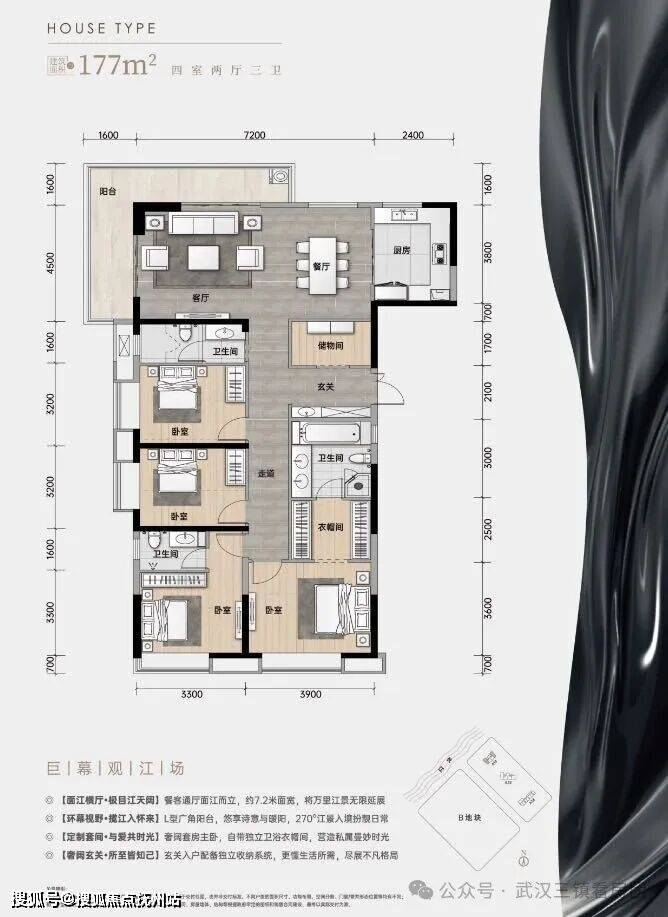 🏠约177㎡一线无遮瞰江阔境,首排滨江,享震撼观江视野(位于B1#、B2#边户)(转角阳台户型)