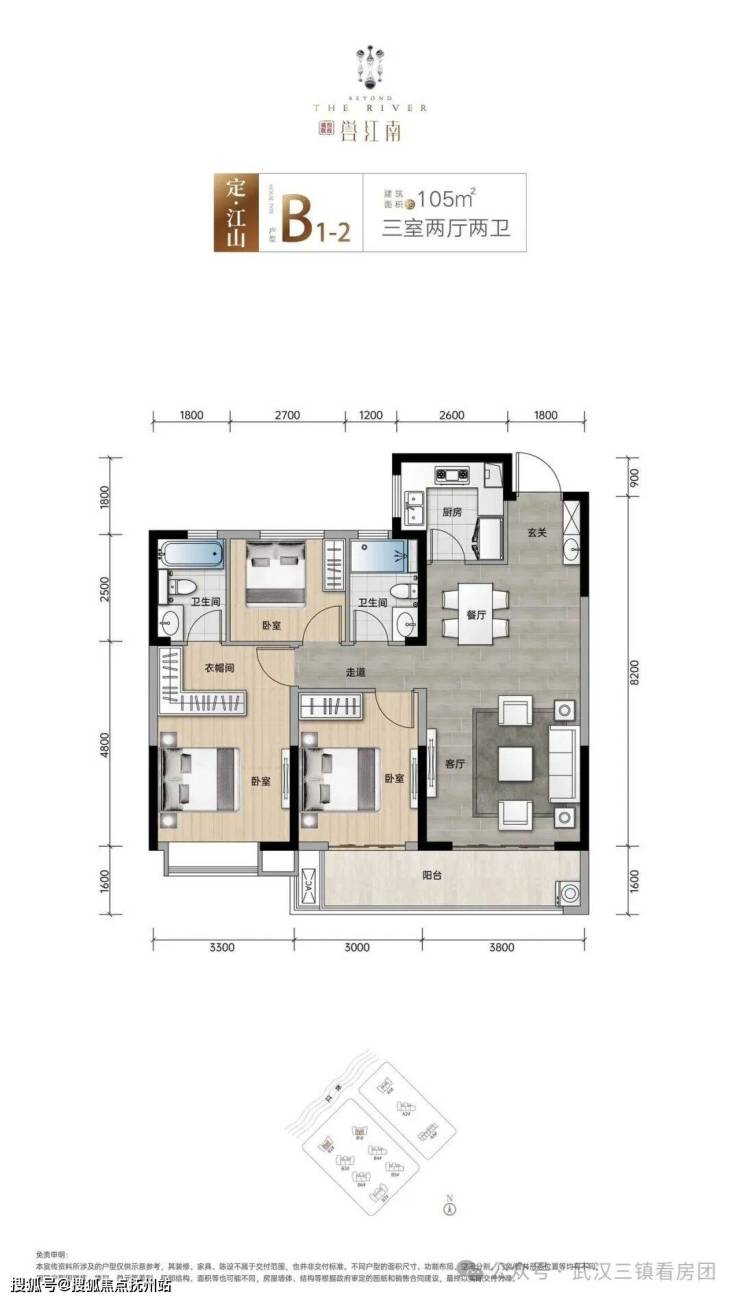🏠约105㎡稀缺滨江小三房,俯瞰中央景观园林,舒适性高(位于B1#、B2#中间户)