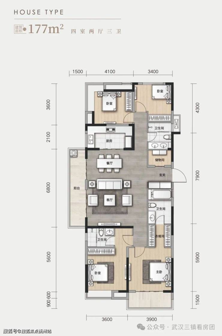 🏠177㎡(四室两厅三卫)位于A2#西边户(横厅户型)