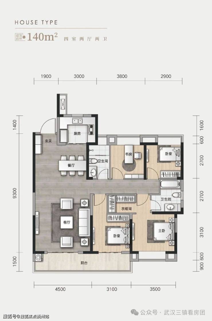 🏠140㎡(四室两厅两卫)位于A2#东边户
