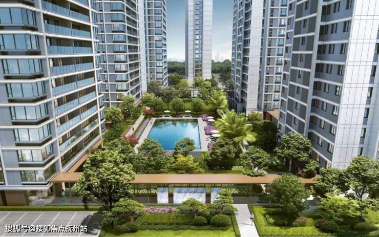 小区中庭打造了约400㎡的中央水池,仿佛一颗闪亮的蓝宝石。这不止是一处景观,更是一个社区生活的活力核心。