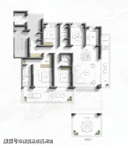 客厅挑高,南北双露台+星空屋顶露台,解锁空中花园、星空派对等多元生活场景。