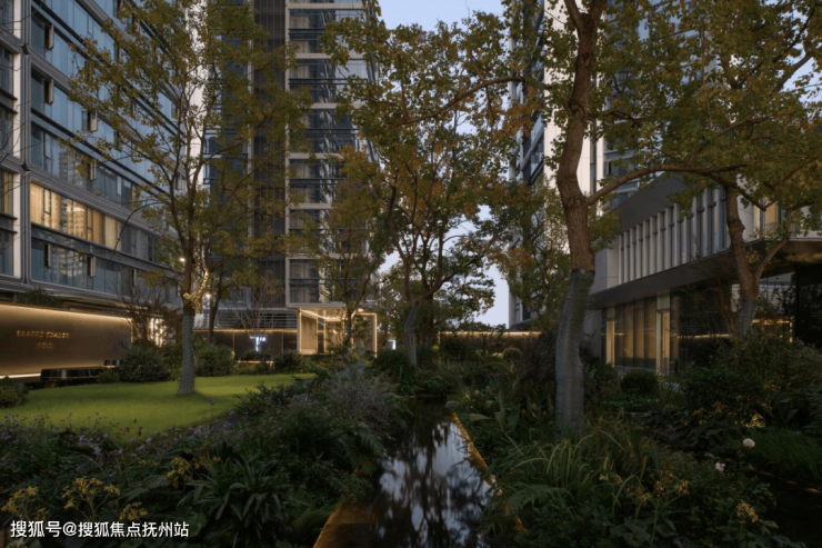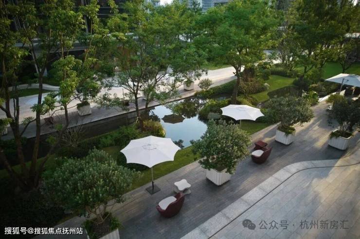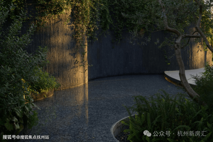 走入T-ONE潮博西区的园区,可以看到一条蜿蜒的水系串联着不同场景,贯穿整个楼盘。在这里,Pok是结合了杭州「钱塘江潮」的在地文化,用溪流与叠水打造出了一座很有度假感的花园。花园中,凡是有户外座椅的地方,就会有微风、树荫与水流的环绕。