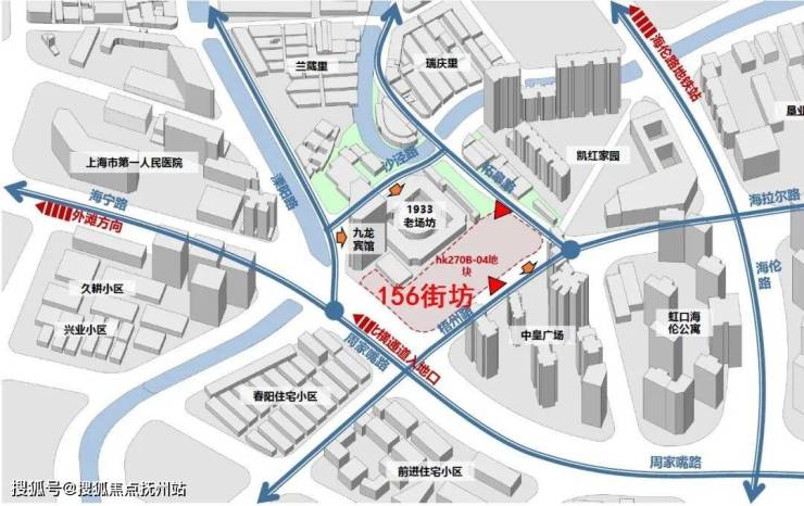 「越秀·外滩樾」地块四至范围, 东至:梧州路,隔壁是中皇广场; 西至:hk270B-02,隔壁就是1933老场坊; 南至:周家嘴路 北至:柘皋路。