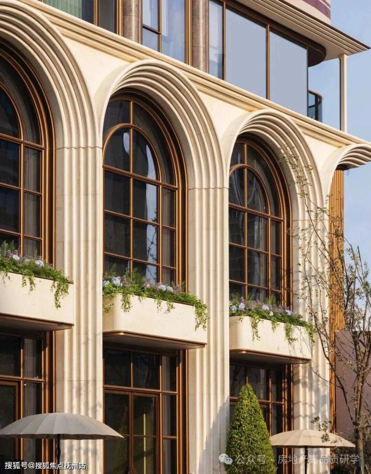 26个近十二米通高的拱券阵列于舒展的沿街界面中,宏大的尺度赋予庄重之感。斯卡帕式的叠退立面,于光影间演绎优雅美学,让回家成为一场风景漫步。