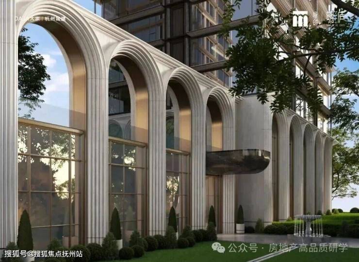 以意大利台地庄园为范,取意杭州郭庄之韵,通过披檐叠级、拱形重构、奢石符号等手法创造性结合,在现代设计框架下,打造出一方经典的艺术大宅。