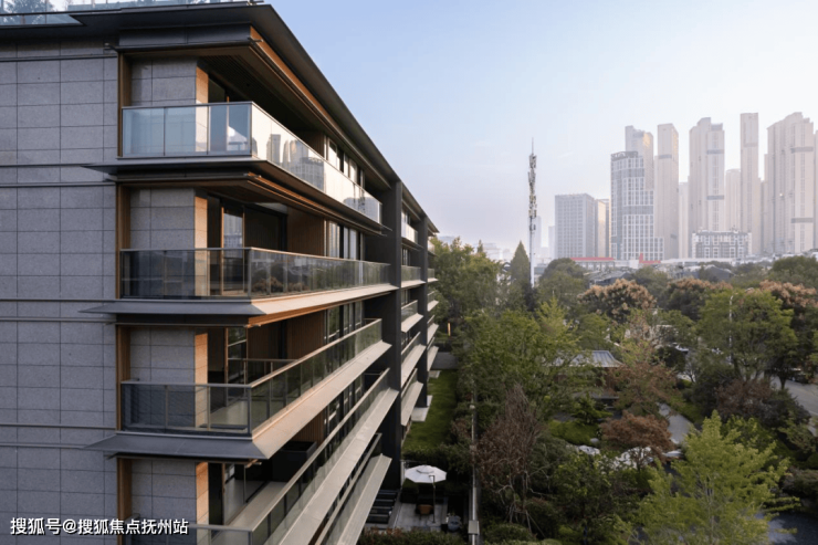 建筑细部,取意传统中式建筑的重檐,与归元禅寺遥相呼应。以现代材料铝合金转译撺檐杆、格子挂落等线性立面构件,提升建筑线条感。