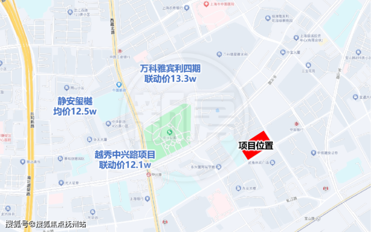 该地块东至公兴路,南至永兴路,西至静安区闸北第三中心小学,北至象山小区;该板块是静安区新房的主力供应区域,地块周边待上市新盘有越秀中兴路项目(联动价12.1w)、静安玺樾12.5w、雅宾利四期(联动价13.3w)等项目。