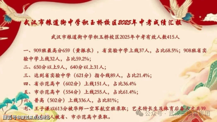 近邻双学府:粮道街中学积玉桥校区(2025年普高率81%,晋升武昌第一梯队)和中华路小学金都校区近距可达。